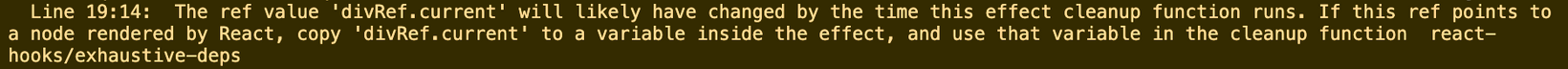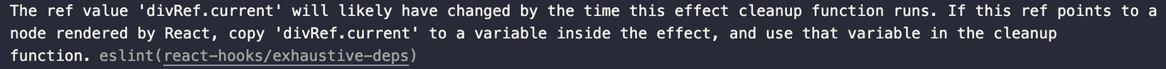 따라서, 위 예시의 cleanup 함수가 실행될 때의 divRef.current는 null이기 때문에 removeEventListener가 실행되지 않습니다.