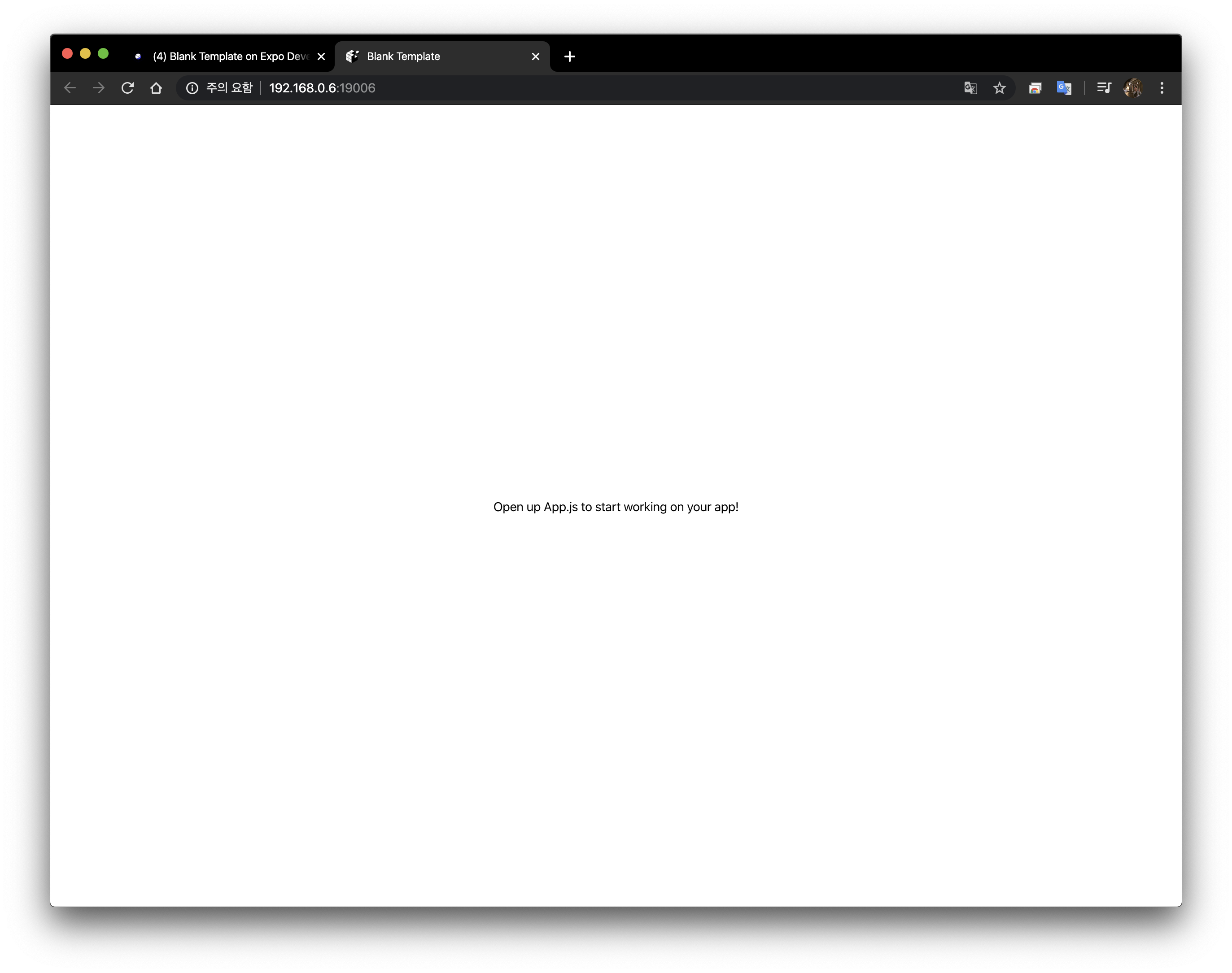 생성된 프로젝트에서 App.js를 수정하고 저장하면, 실시간으로 화면이 업데이트 된다.