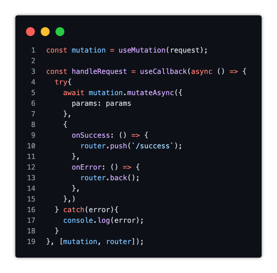 react-query를 사용해서 POST 요청을 하기 위해서는 react-query의 mutate를 사용하고, 비동기 요청을 위해서는 mutateAsync를 사용한다.