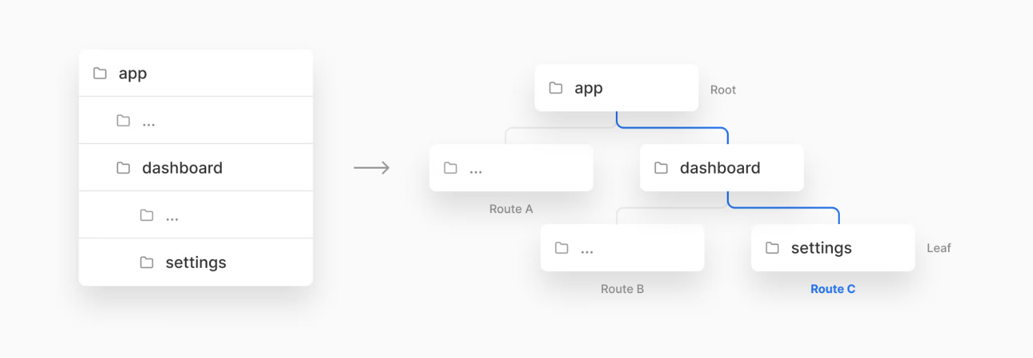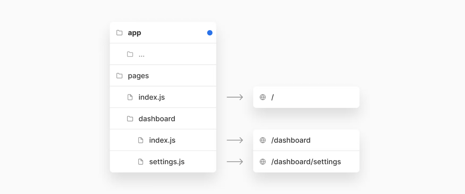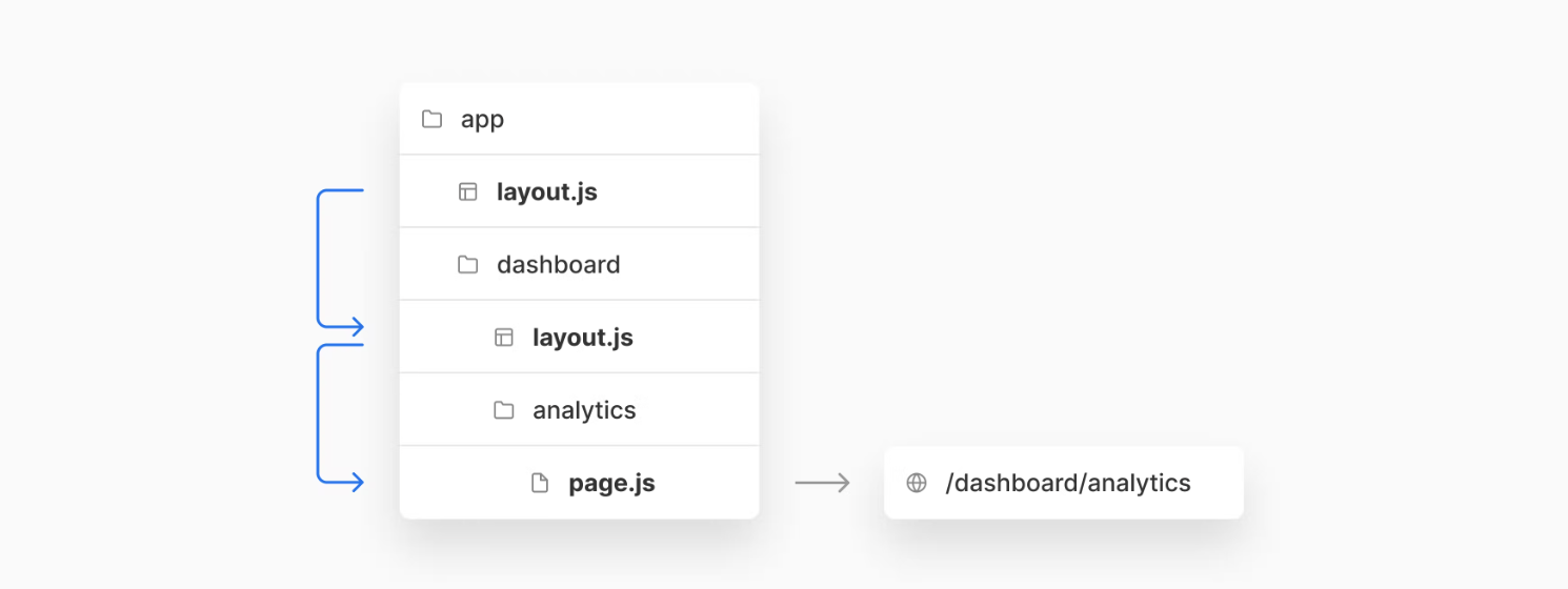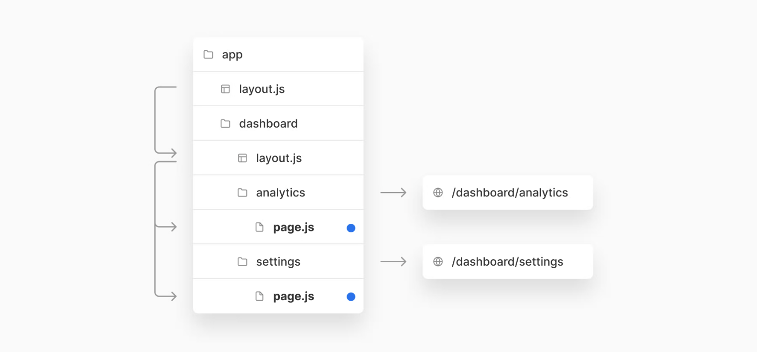 예를 들어, app 디렉토리에 두 개의 중첩된 폴더에 의해서 /dashboard/settings을 추가할 수 있다.