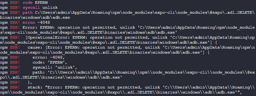 npm install -g expo-cli 명령을 실행했을 때, 아래와 같은 EPERM 에러가 발생한다면,